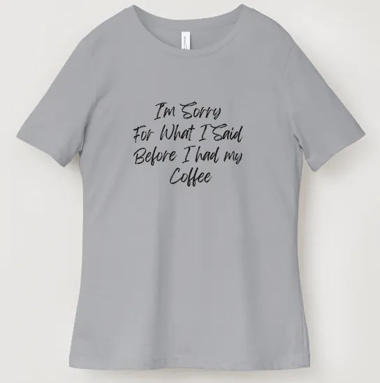 I am sorry for what I said before coffee T-shirt. Experience the comfort and high-quality cotton materials of our versatile design. Perfect for any occasion, our product ensures a comfortable fit and top-notch style. Say 'I am sorry for what I said before coffee' with our exceptional piece today.